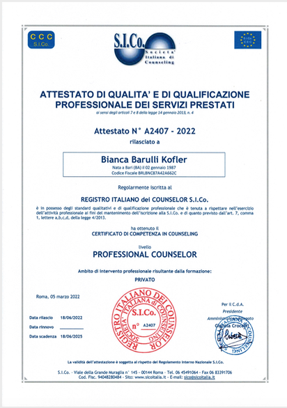 Certificato ASSO Counseling N.° A2407-2022